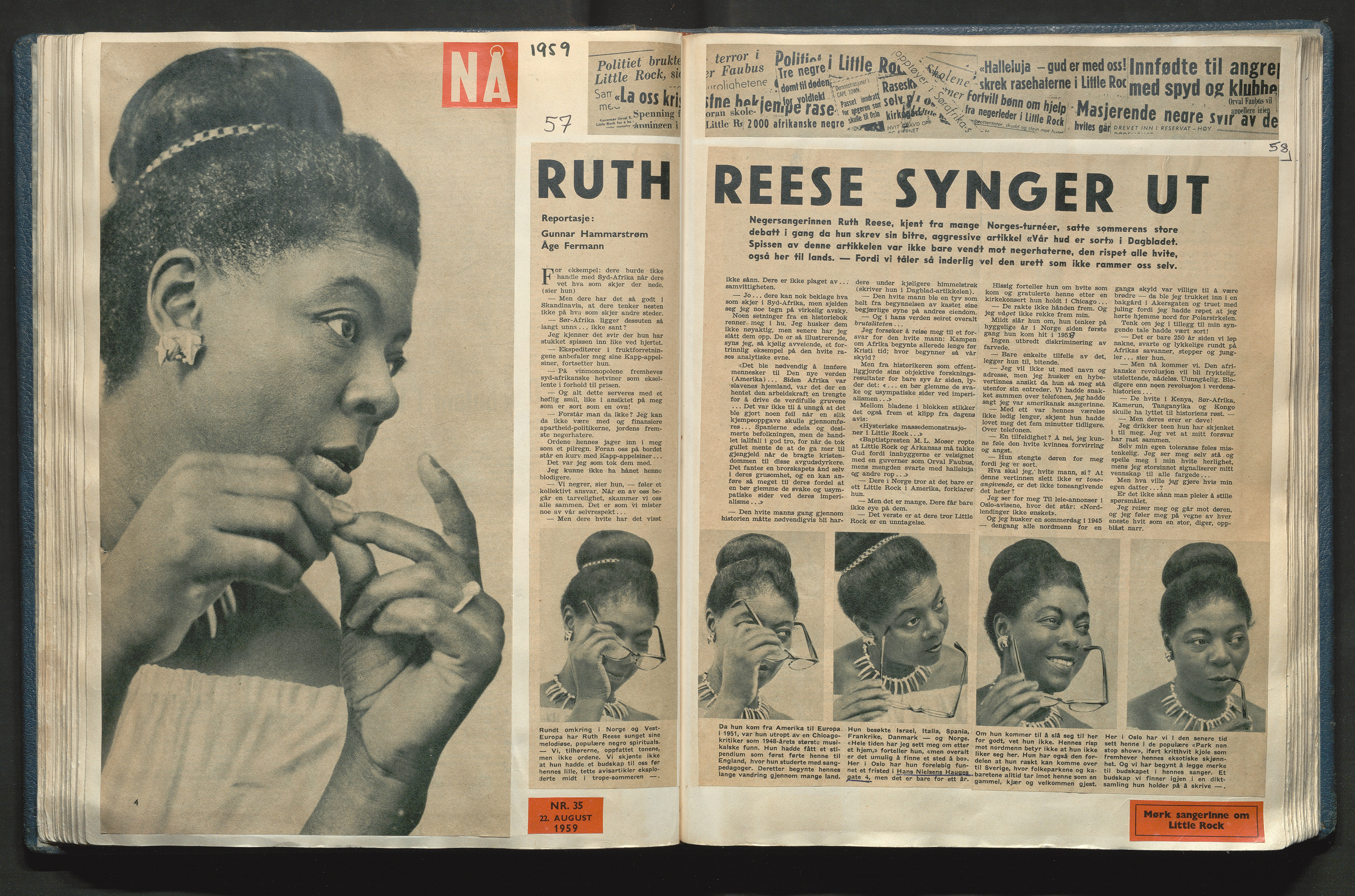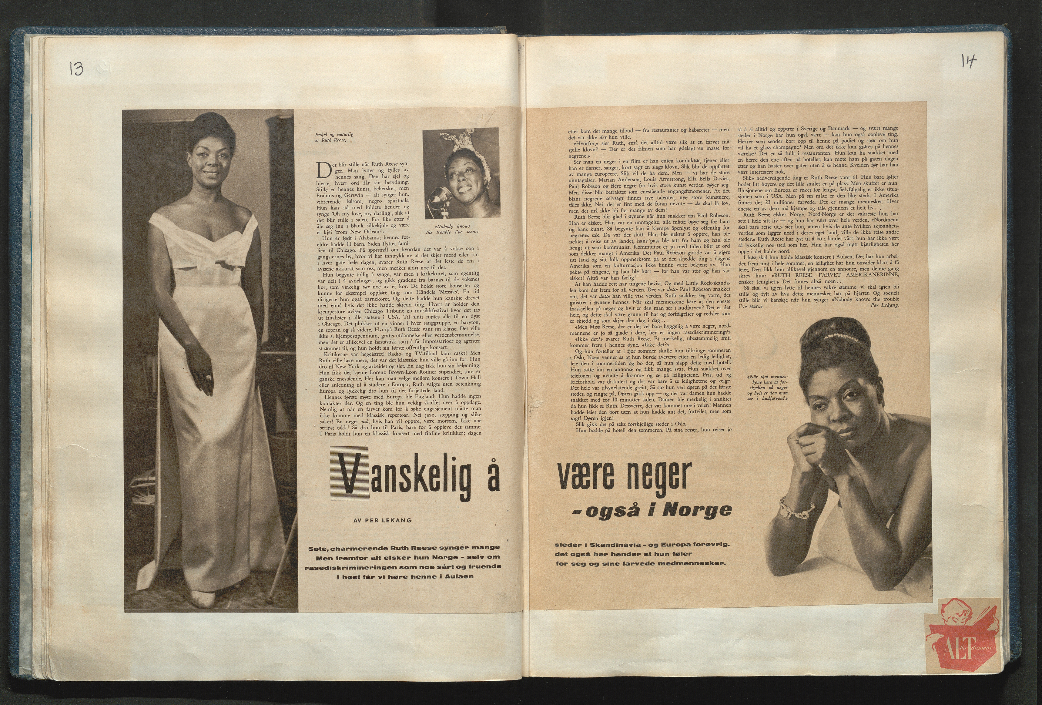 «Her er ingen rasediskriminering?», spurte journalisten i portrettet. «Ikke det?» svarte Reese: «Selvfølgelig er ikke situasjonen som i USA. Men på sin måte er den like sterk», står det videre. Foto: MiRA-senteret/Oslo byarkiv.